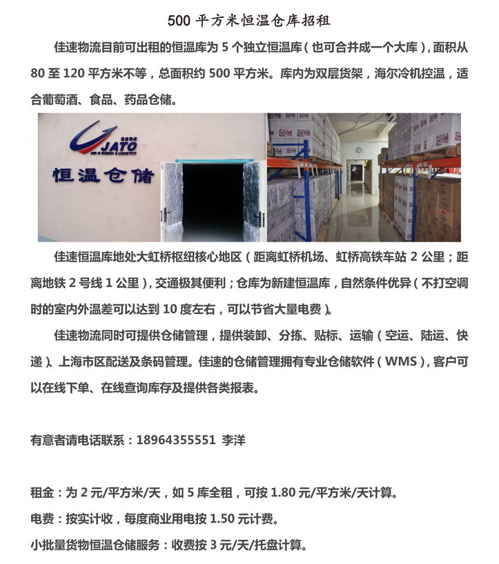 国家会展中心附近唯一500平方米恒温仓库招租